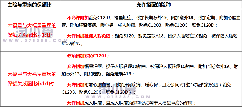 大福星重疾、福星轻症需与大福星的交费年期需保持一致;